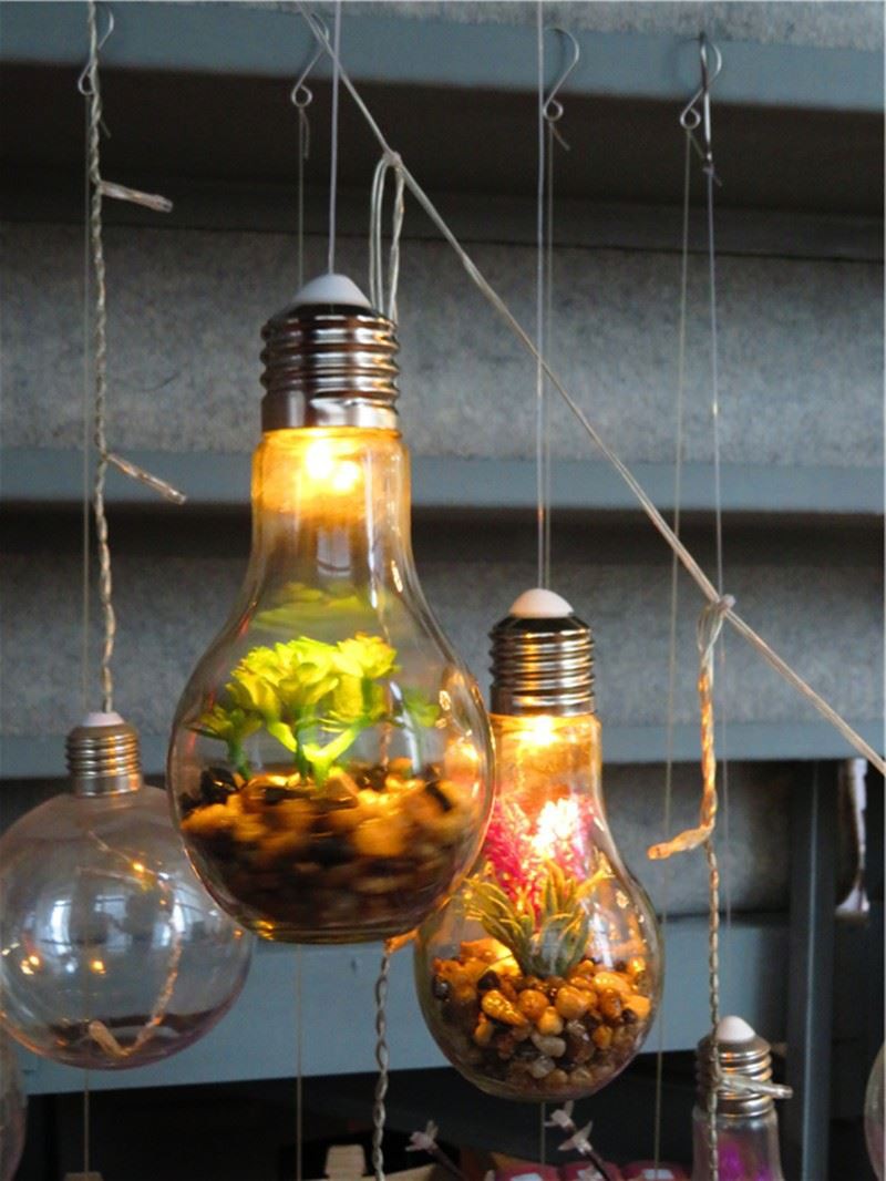 ● This light bulb has a landscape of plants and stones,It has four kinds of plants:lavender,aloe,succulent,and water weed.